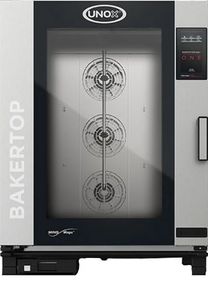 Пароконвектомат UNOX XEBC-10EU-E1RM серии BAKERTOP MIND.Maps™ ONE предназначен для выпечки хлебобулочных и кондитерских изделий на предприятиях общественного питания и торговли, в пекарнях и кондитерских. Модель оснащена электронным управлением и встоенной в дверь светодиодной подсветкой. Легко открывающееся внутреннее стекло облегчают чистку и обеспечивает максимальную гигиену. Камера с закругленными углами выполнена из нержавеющей стали AISI 304, направляющие - из профилированной стали, дверной замок - из высокопрочного самосмазывающегося технополимера, внутренний штифт дверной ручки - из углеродного волокна.